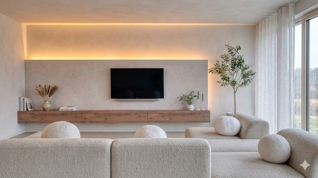 Serce domu — przestrzeń do wypoczynku, spotkań i cichej obecności. Projektujemy salony, które łączą otwartość z intymnością.